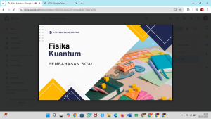 Materi mengenai “Tutorial Soal-soal UAS Angkatan 2023 dan Angkatan 2024” disampaikan oleh Daliyah Salma Fitriyatillah dan Dewi Fortuna selaku Mahasiswa Pendidikan Fisika Angkatan 2022 dan Syeima Martasya Indah .P dan Sela Laisya Mahesa selaku Mahasiswa Pendidikan Fisika Angkatan 2023. Kegiatan tersebut berlangsung secara daring melalui aplikasi Google Drive.